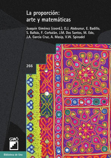 En un momento en que todos los currículos modernos hablan de conectar la matemática a la realidad cotidiana y otras competencias, es bueno reflexionar sobre lo específico de las relaciones entre la competencia artístico-cultural y la matemática.Si bien este libro aporta más reflexiones sobre la pintura, no se deja de lado la arquitectura, el diseño, los mapas, el uso de las TIC, la escultura y la música. Se respira a Pitágoras, Barents, Durero, Leonardo da Vinci y Ghyka, pero también a Rafael, Botero, Dalí, Oldemburg, Borrás, Van der Lan, Le Corbusier y muchos otros artistas. Se decide hablar de proporciones desde lo geométrico y numérico, porque es un tema recurrente y fecundo en esta conexión entre lo artístico-cultural y lo matemático, que ha apasionado a toda la humanidad.